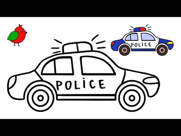 Как нарисовать МАШИНУ / мультик раскраска ПОЛИЦЕЙСКАЯ МАШИНА для детей /...